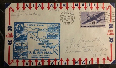 1946 Houston Tx Usa First Flight Airmail Cover Ffc To San Jose