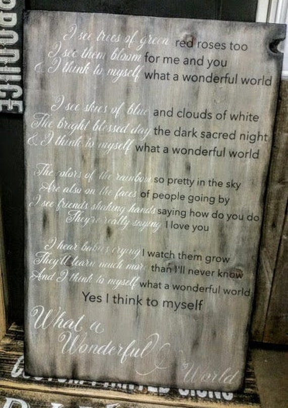 What A Wonderful World Lyric Sign Song Lyrics Wonderful Etsy