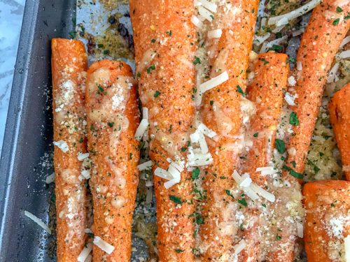 Garlic Butter Parmesan Roasted Carrots With Peanut Butter On Top