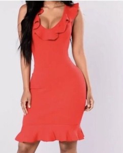 New With Tags Fashion Nova Elicia Ruffle Red Dress Bodycon Xs Sold